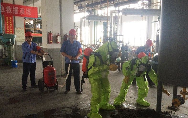 開展行之有效的安全與環(huán)保應(yīng)急救援預(yù)案演練:由公司安全環(huán)保部牽頭,公司全體安委會成員和部分制造部員工在制造部低溫工段組織了《因發(fā)生溶劑泄漏,導(dǎo)致人員中毒、排水系統(tǒng)受到污染》的應(yīng)急救援預(yù)案活動,極大地提高員工對生產(chǎn)過程中突發(fā)情況的應(yīng)急防護、搶險和救援能力。